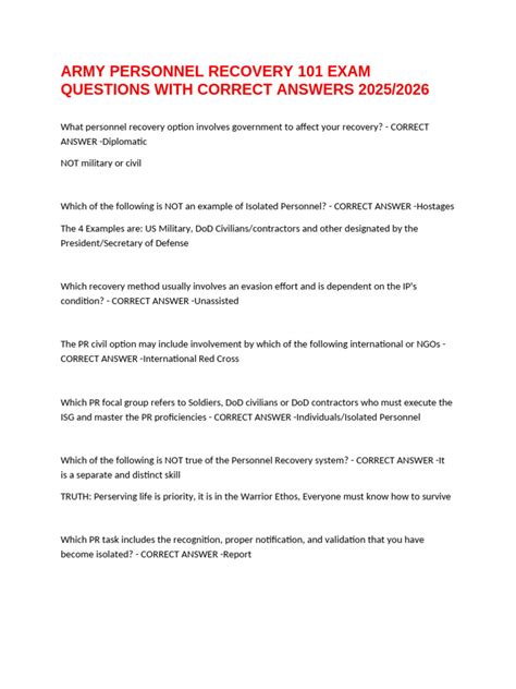 Read Online Army Personnel Recovery 101 Answers Doc Gutenberg